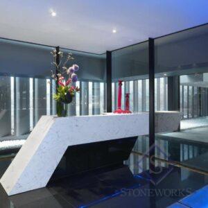 HanStone is a poplular quartz countertop because it is durable. Made from one of the hardest minerals on earth, HanStone Quartz is highly resistant to scratches, chips, and cracks. Unlike natural stone, it doesn’t require sealing, conditioning, or polishing. It’s non-porous, making it resistant to stains and bacteria. HanStone can withstand high temperatures, making it ideal for kitchen countertops. It’s GREENGUARD certified, ensuring it meets strict chemical emissions limits and contributes to healthier indoor air quality and comes with a Residential Lifetime Limited Warranty, providing peace of mind for homeowners. To see the entire line of HanStone quartz countertop slabs – please visit our showroom or call: